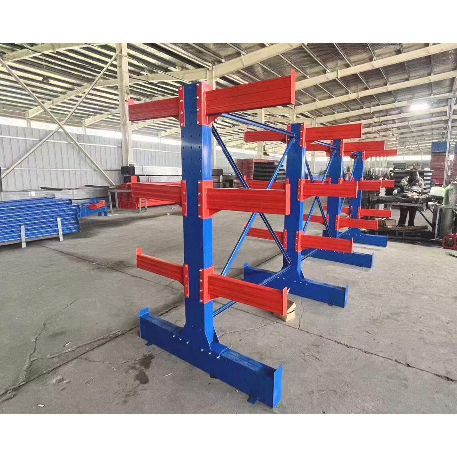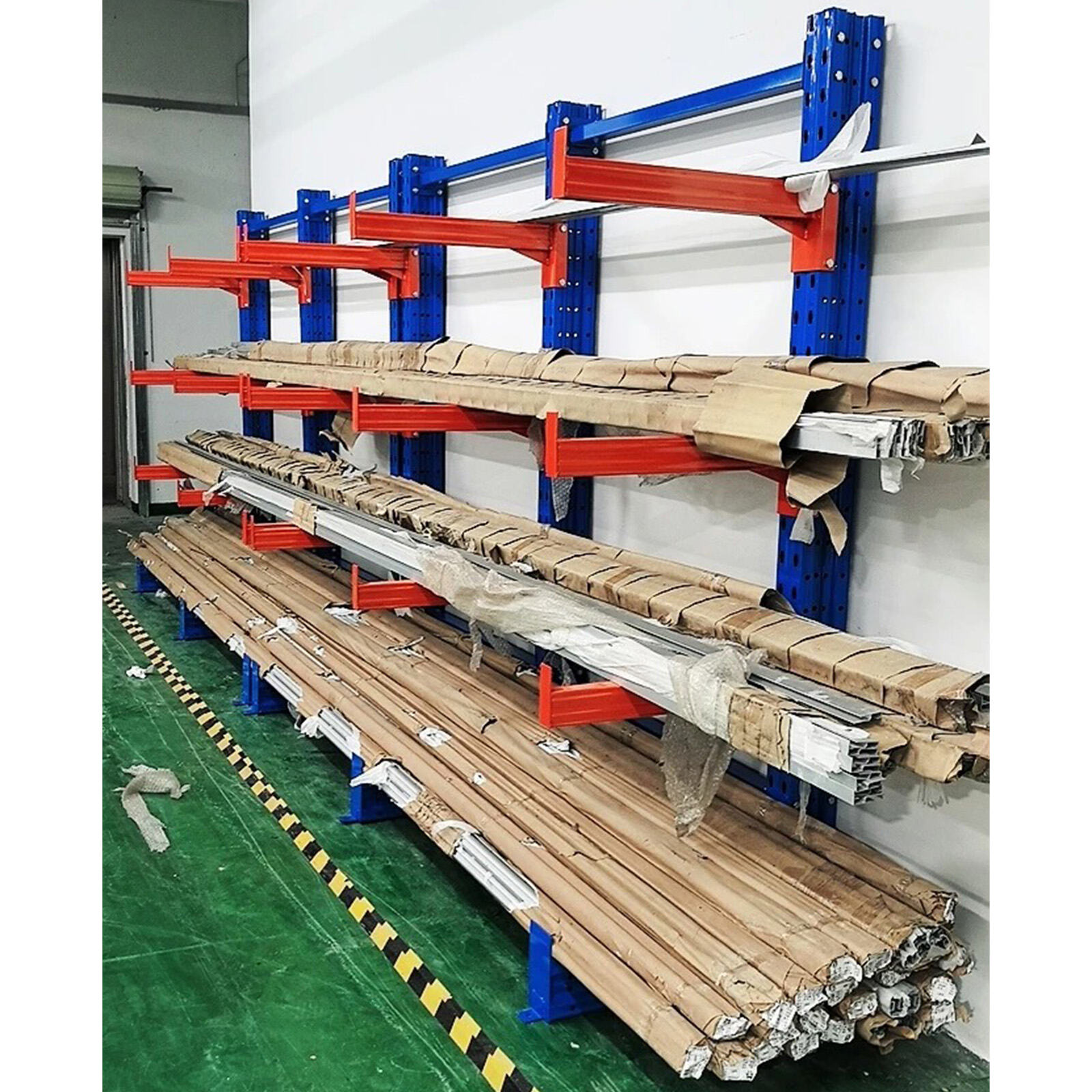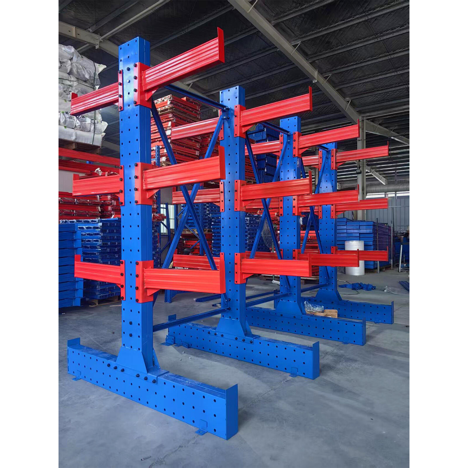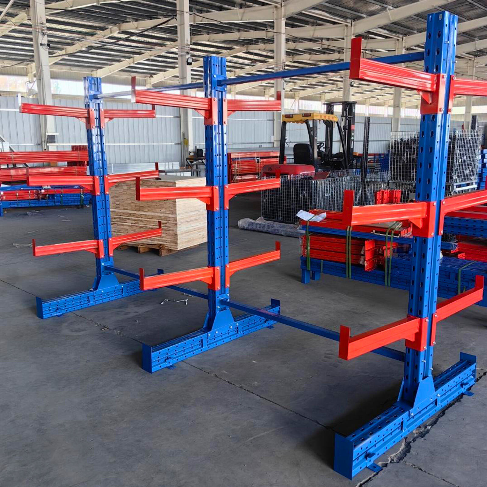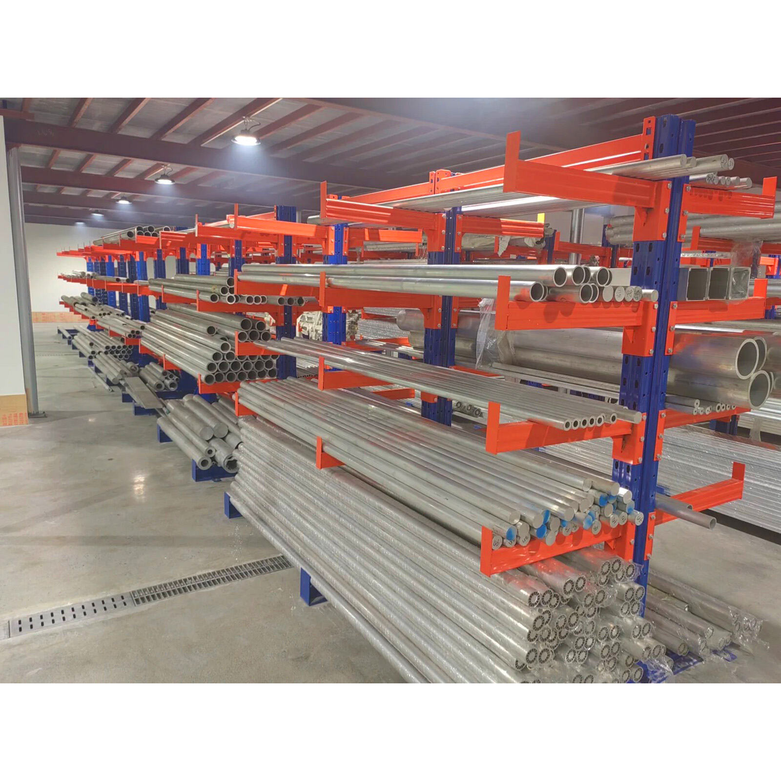 Cantilever racking system is designed for storing long and bulky materials such as pipes, timber, steel profiles, and sheets.